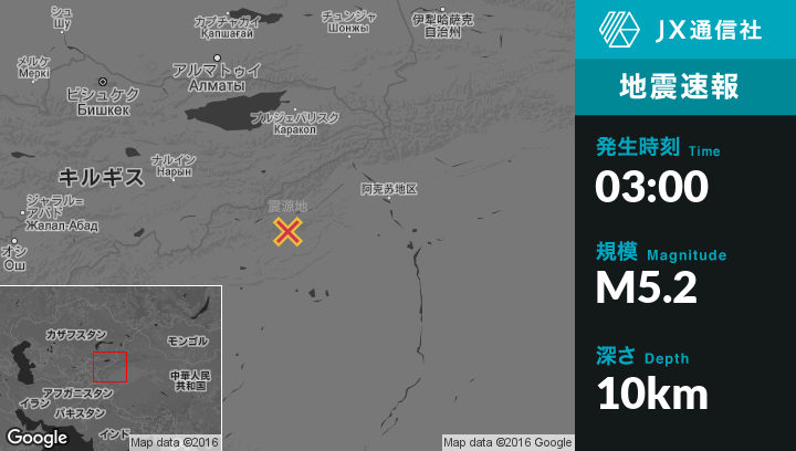 8月13日 03:00頃、中国のAksuから西南西175kmの地点で地震がありました。