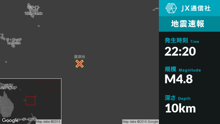 | 震源地 | ニューカレドニアのIle Hunterから東南東75kmの地点 |