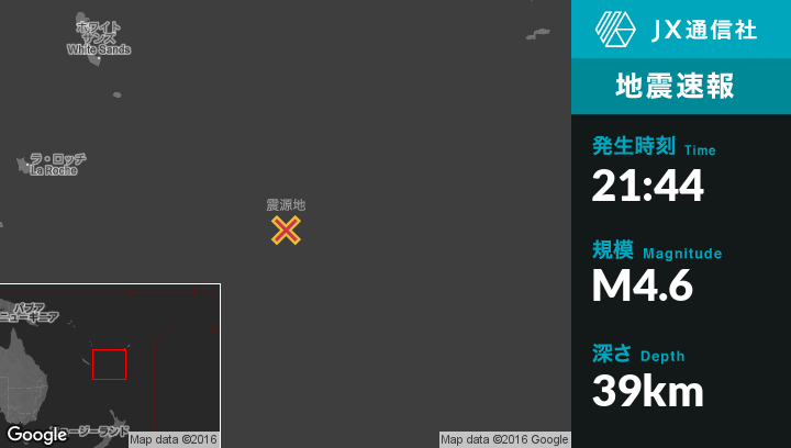 | 震源地 | ニューカレドニアのIle Hunterから東118kmの地点 |