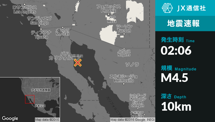 | 震源地 | メキシコのSan Felipeから南東72kmの地点 |