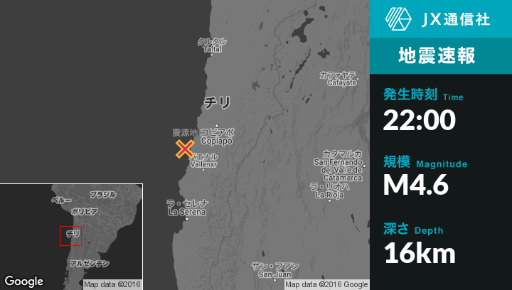 | 震源地 | チリのVallenarから北西93kmの地点 |