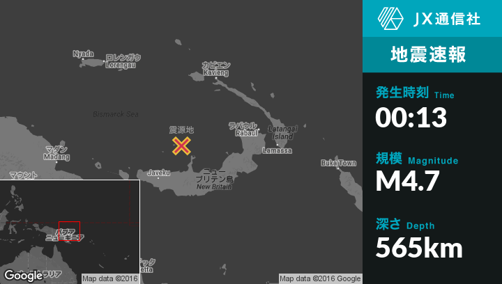 | 震源地 | パプア ニューギニア独立国のKimbeから北北西116kmの地点 |