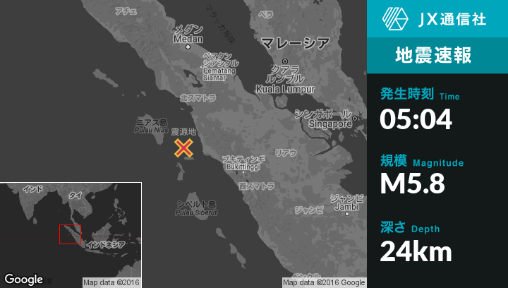 | 震源地 | インドネシアのPadangsidempuanから南西119kmの地点 |