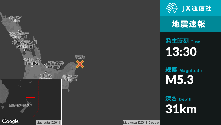 | 震源地 | ニュージーランドのGisborneから北北東135kmの地点 |