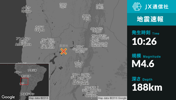 | 震源地 | アルゼンチンのSan Antonio de los Cobresから北西57kmの地点 |
