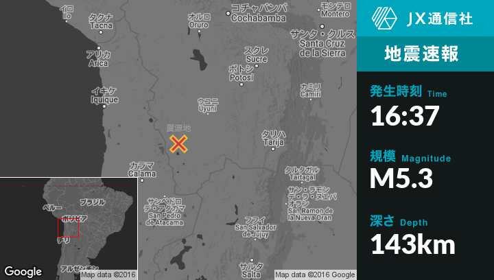 | 震源地 | ボリビアのUyuniから南西131kmの地点 |