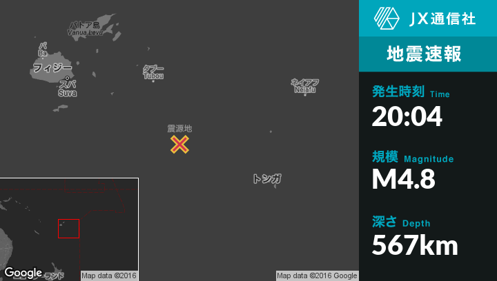 9月06日 20:04頃、フィジーのNdoi Islandから北東103kmの地点でM4.8の地震がありました。