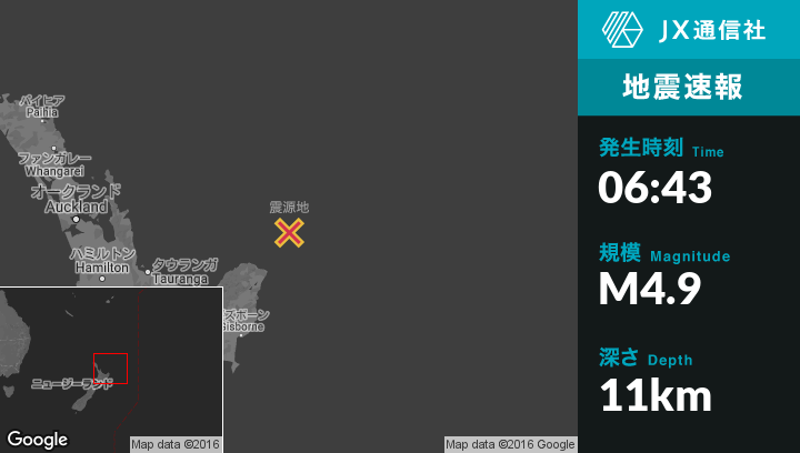 9月07日 06:43頃、ニュージーランドのOpotikiから北東193kmの地点でM4.9の地震がありました。