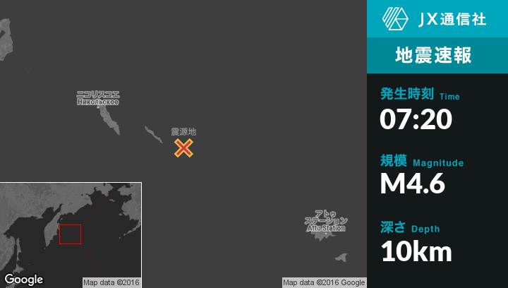 | 震源地 | ロシアのNikol'skoyeから東南東186kmの地点 |