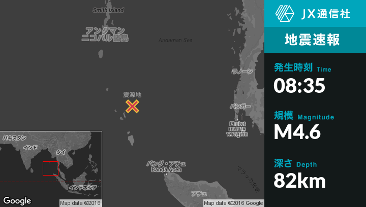 9月09日 08:35頃、インドのMoheanから北東89kmの地点でM4.6の地震がありました。