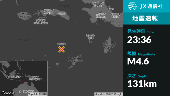| 震源地 | インドネシアのSaumlakiから北西215kmの地点 |