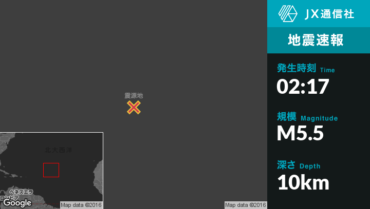 | 震源地 | グアドループ (仏領)のGrande Anseから東北東1723kmの地点 |