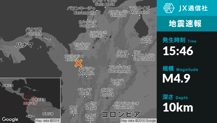 | 震源地 | コロンビアのMutataから東北東31kmの地点 |