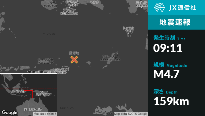 | 震源地 | インドネシアのSaumlakiから西307kmの地点 |