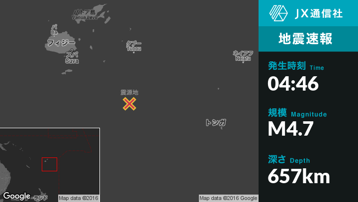 | 震源地 | フィジーのNdoi Islandから北西52kmの地点 |