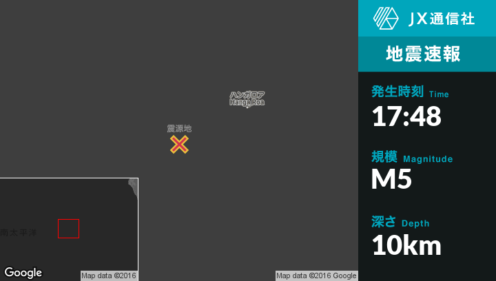 | 震源地 | チリのHanga Roaから西南西237kmの地点 |