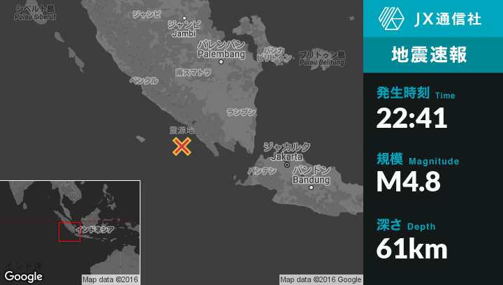 | 震源地 | インドネシアのKruiから南西57kmの地点 |