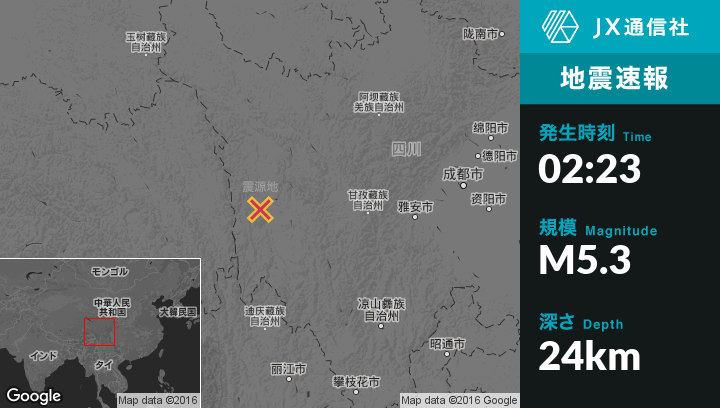 9月23日 02:23頃、中国のRulongから南西104kmの地点でM5.3の地震がありました。