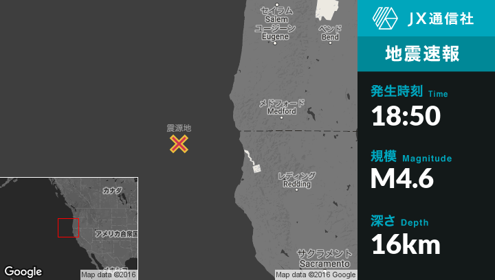 | 震源地 | オレゴン州のBrookingsから西158kmの地点 |
