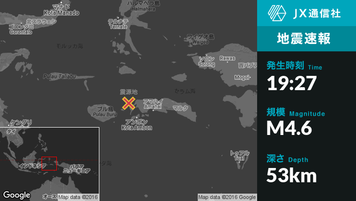 | 震源地 | インドネシアのPiruから西北西44kmの地点 |