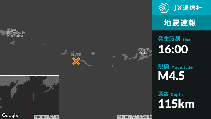 | 震源地 | アラスカのLittle Sitkin Islandから南南西34kmの地点 |