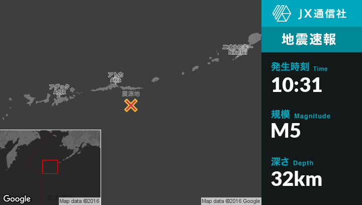 | 震源地 | アラスカのAtkaから南東71kmの地点 |