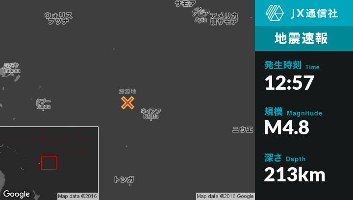 | 震源地 | トンガのNeiafuから北西146kmの地点 |