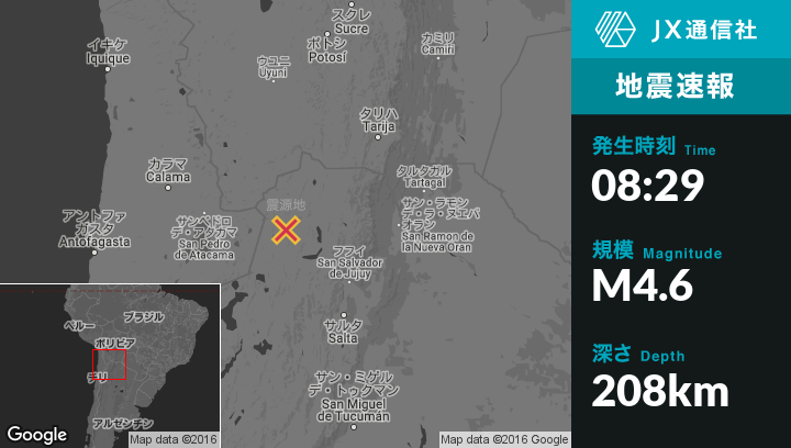 | 震源地 | アルゼンチンのEl Aguilarから西91kmの地点 |