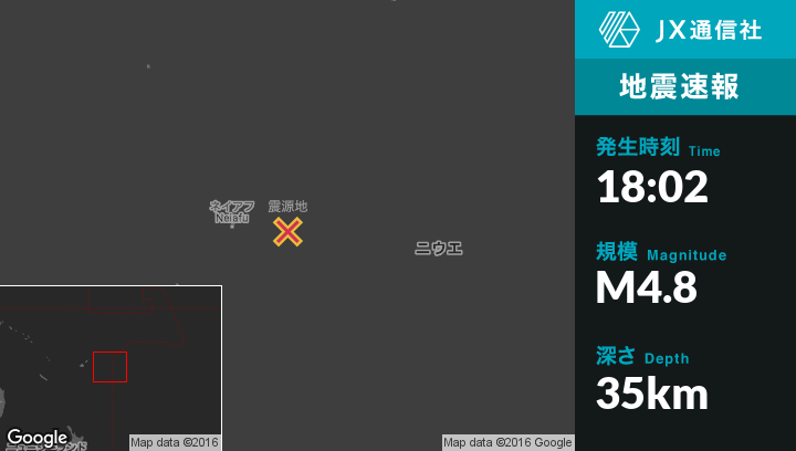 | 震源地 | トンガのNeiafuから東115kmの地点 |