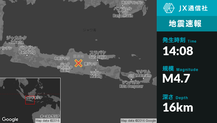 | 震源地 | インドネシアのNgawiから西北西10kmの地点 |