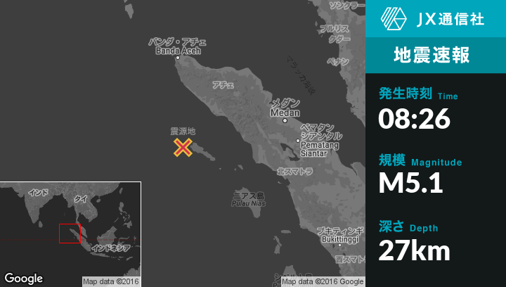 | 震源地 | インドネシアのSinabangから西北西109kmの地点 |