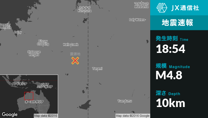 | 震源地 | オーストラリアのHalls Creekから南南東95kmの地点 |