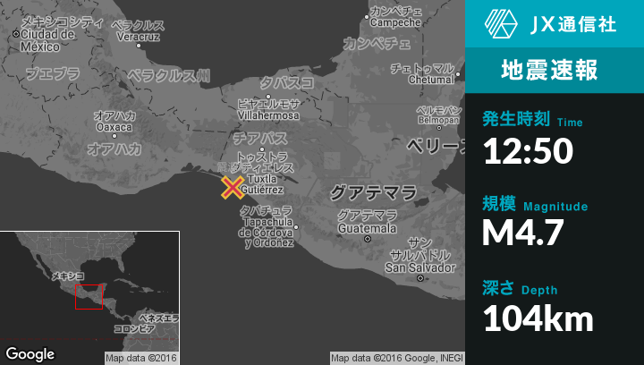 | 震源地 | メキシコのParedonから南東8kmの地点 |