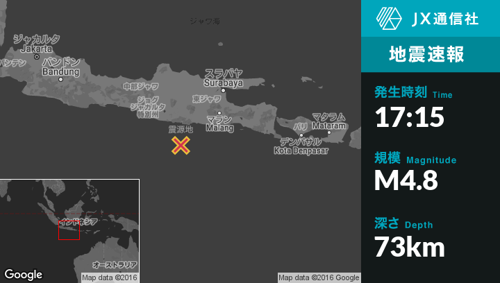 | 震源地 | インドネシアのNgulung Wetanから南64kmの地点 |