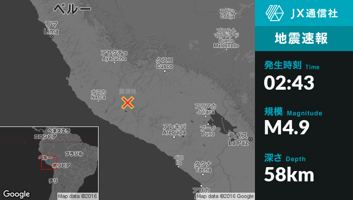 | 震源地 | ペルーのCoracoraから北東30kmの地点 |