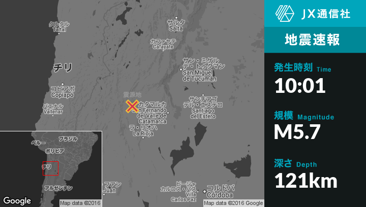 | 震源地 | アルゼンチンのTinogastaから東24kmの地点 |