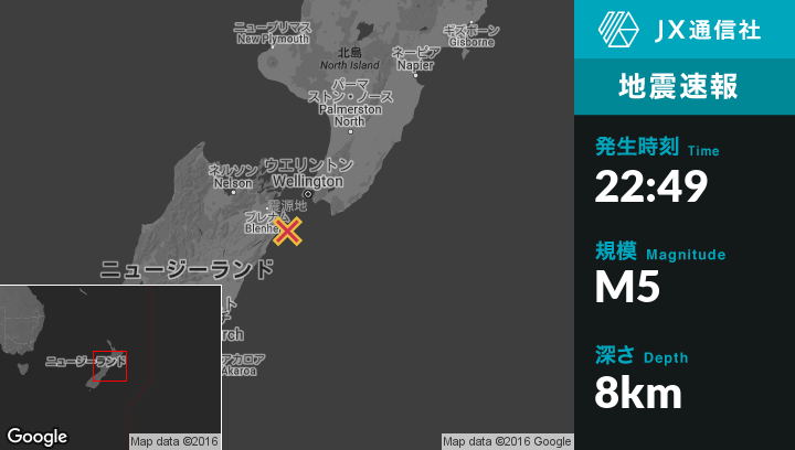 | 震源地 | ニュージーランドのBlenheimから南東42kmの地点 |
