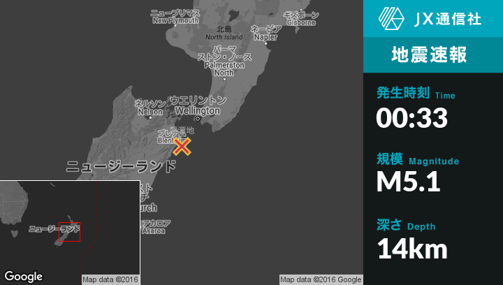 | 震源地 | ニュージーランドのBlenheimから南東46kmの地点 |