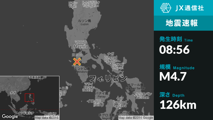 | 震源地 | フィリピンのHukayから北北西2kmの地点 |