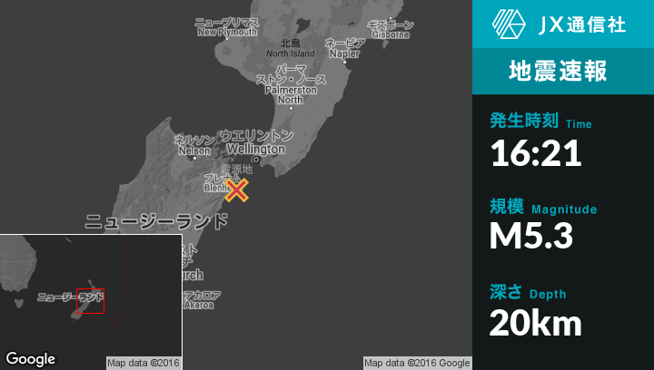 | 震源地 | ニュージーランドのBlenheimから南東38kmの地点 |