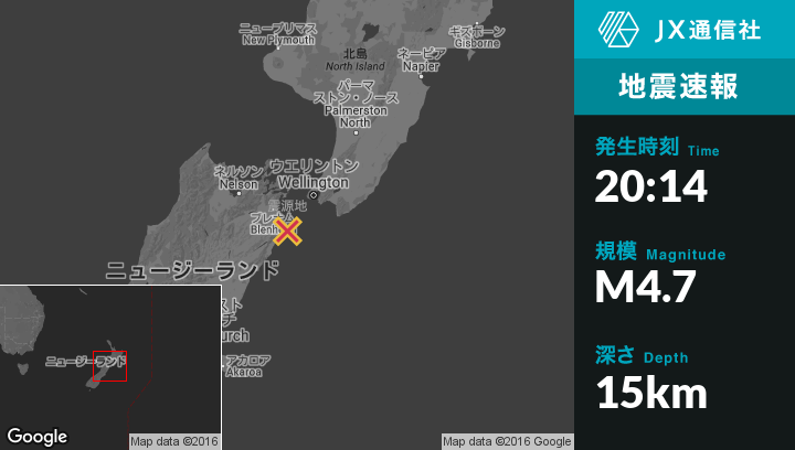 | 震源地 | ニュージーランドのBlenheimから南東34kmの地点 |