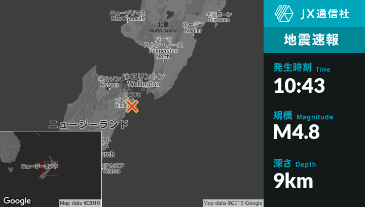 | 震源地 | ニュージーランドのBlenheimから南東34kmの地点 |