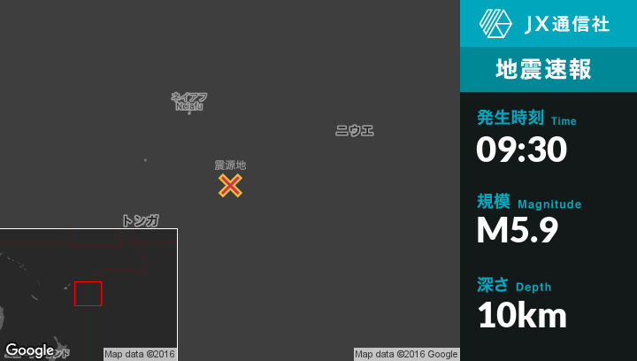 | 震源地 | トンガのPangaiから東南東152kmの地点 |