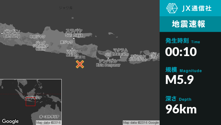 | 震源地 | インドネシアのKepanjenから南南西71kmの地点 |