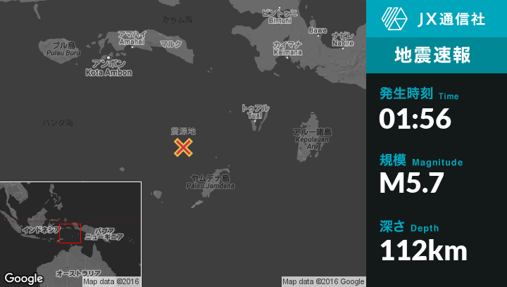 | 震源地 | インドネシアのSaumlakiから北北西200kmの地点 |