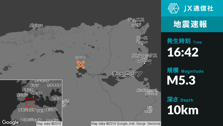 | 震源地 | アルジェリアのZeribet el Ouedから西北西25kmの地点 |