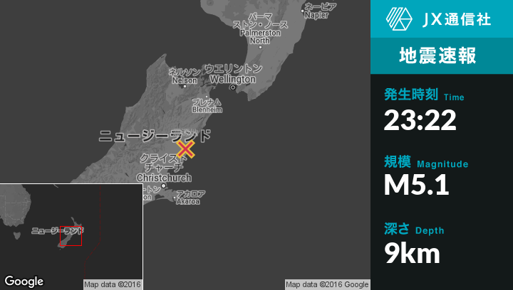 | 震源地 | ニュージーランドのKaikouraから南西40kmの地点 |