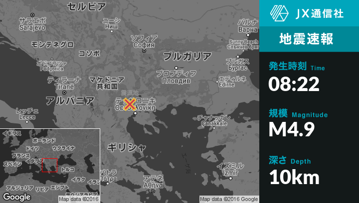 | 震源地 | ギリシャのPolykastronから東北東11kmの地点 |