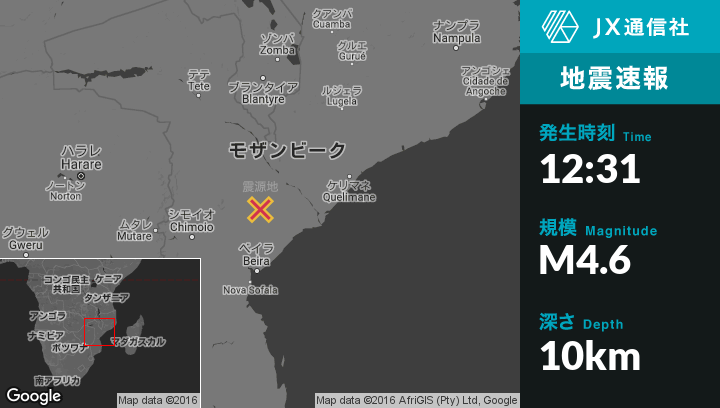 | 震源地 | モザンビークのDondoから北133kmの地点 |