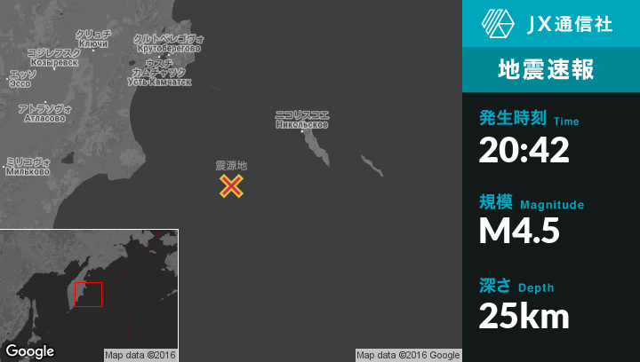 | 震源地 | ロシアのNikol'skoyeから南西137kmの地点 |